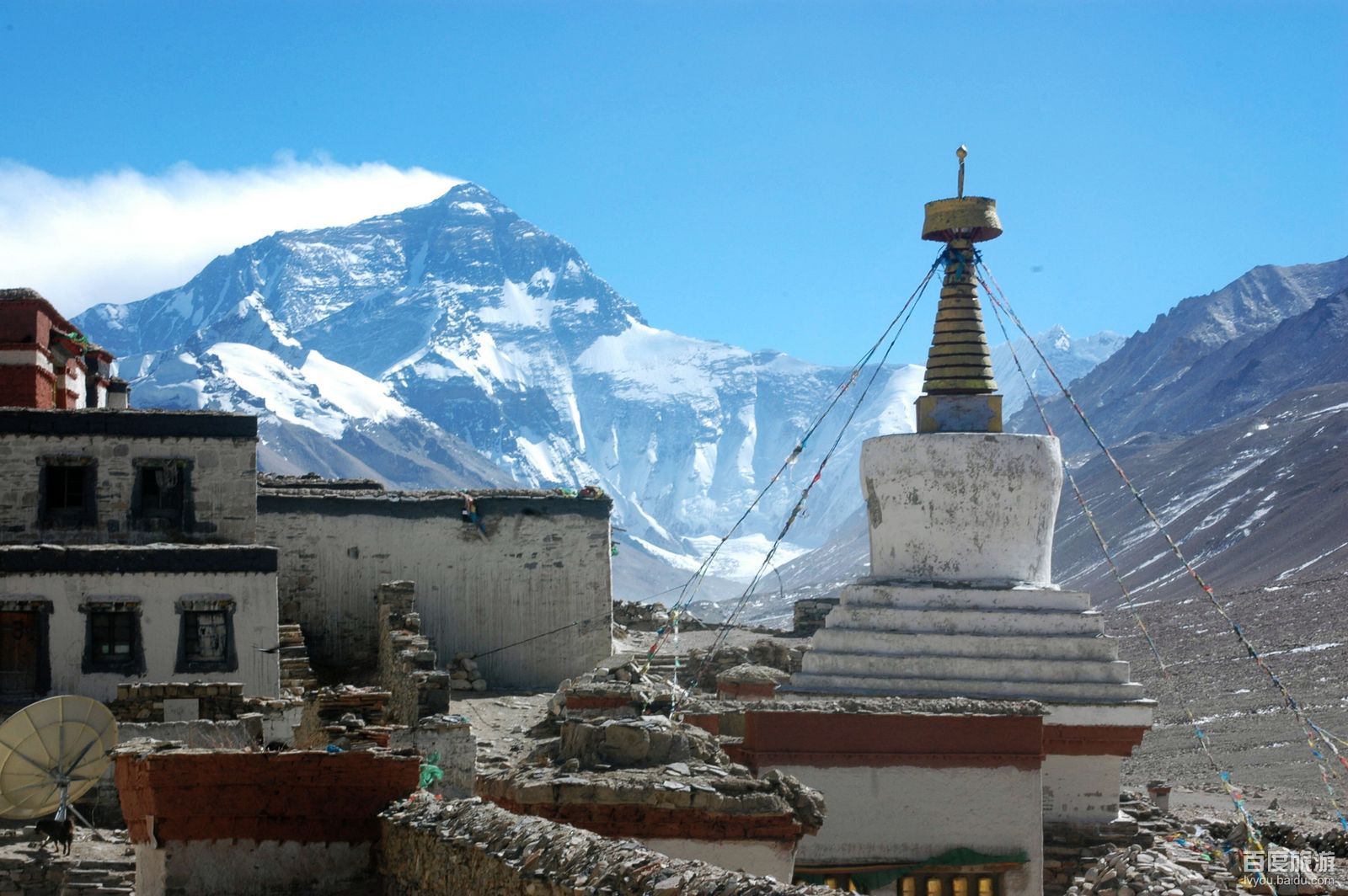 西藏绒布寺,位于西藏日喀则地区,珠穆朗玛峰下绒布沟东西侧的卓玛山顶,海拔5100米,地势高峻寒冷,是世界上海拔最高的寺庙。在世纪灾难大片电影《2012》中老喇嘛站在峰顶的寺庙,面对扑面而来的巨大洪峰,从容地敲响了最后的钟声。