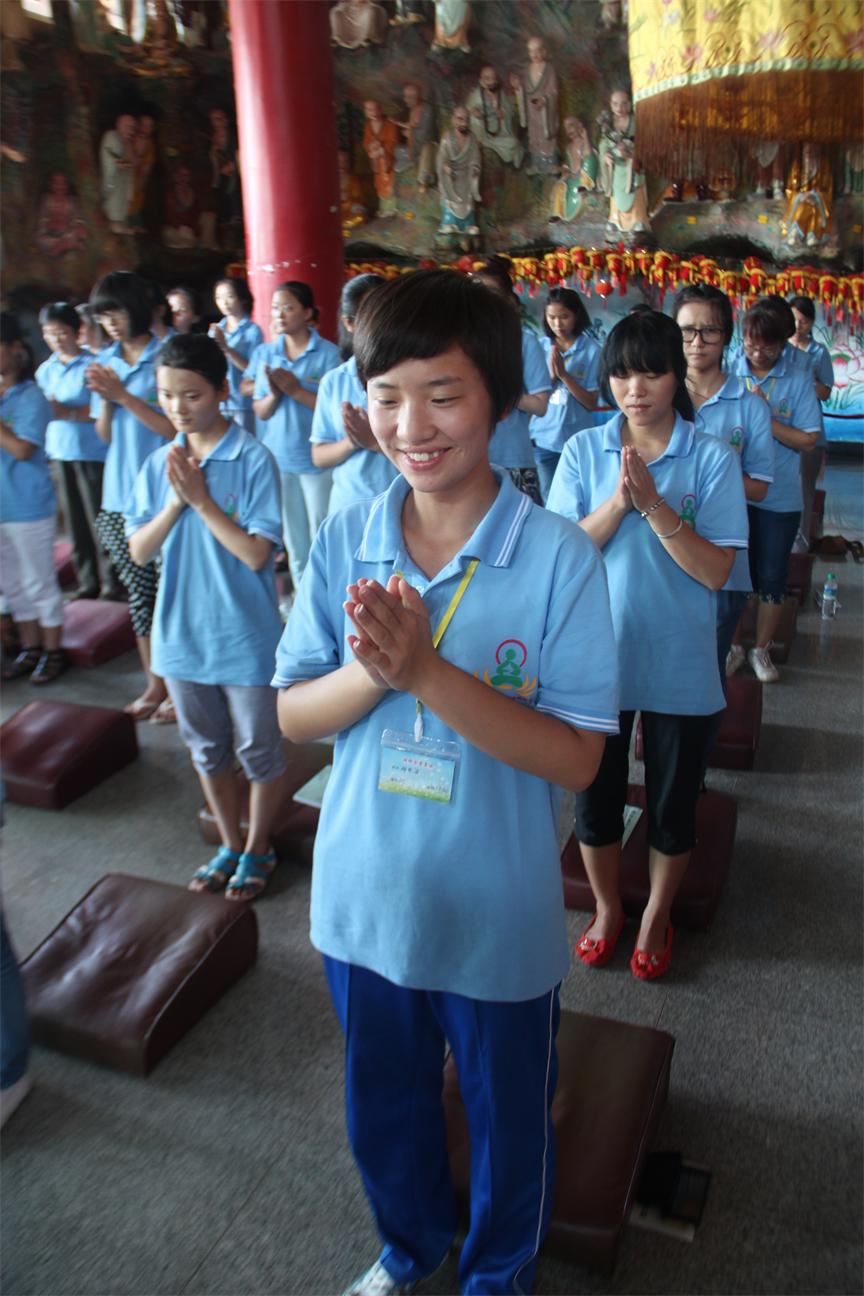 由初来时的种种不习惯,到现如今的依依不舍,大家在逐渐克服自己、改变习性。太多的第一次充斥在七天的生活中,使其显得如此珍贵。第一次4点半起床,大家身心疲惫,几欲放弃。第一次念诵经文,大家诸多错误,十分生疏。第一次与师父亲近交谈,大家放弃偏见,识得僧宝。第一次参禅打坐,大家不熟盘腿,双脚麻痹。第一次行脚拜佛,大家渐渐感恩,识得佛宝。第一次朝拜舍利塔,大家充满好奇,进而感动。