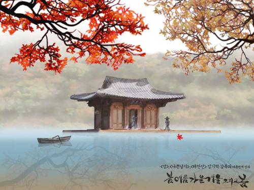 电影里出现的那个寺庙,是一个象征,在韩国并没有真实的场地存在,而是为了电影而临时搭建,拍摄完毕之后已拆除。这个寺庙,美得如同人间仙境,烟波浩渺,空灵寂静,超然绝世中带着浓浓的虚幻色彩。它象征着生活本质,无非如此简单朴素,人类源于自然又归于自然。人们存在于这个世界上,与自己内心的欲望做着斗争,有冲突有矛盾,在信仰中归于解脱和净化。