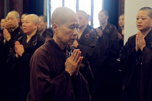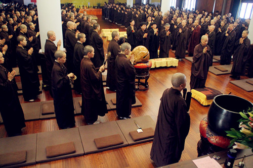 2013年8月15日上午八点:温州太平寺般若讲堂内,梵音动处,众僧云集;花香果硕,胜缘和合;太平寺住持上万下如法师,率僧俗二众摄净心灵,共结中元佛七普利法会,来利益冥阳两界的有情众生。