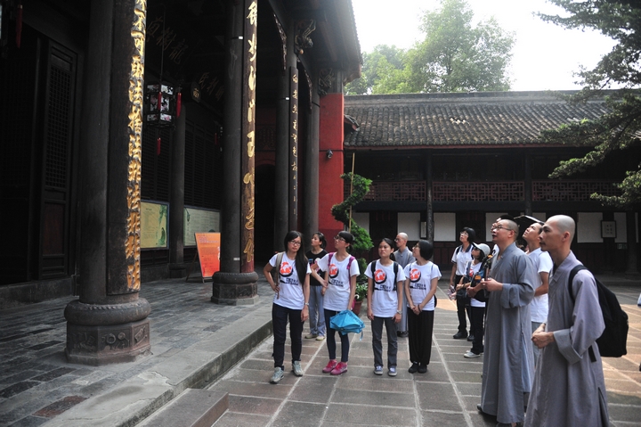 宏开法师为他们介绍了文殊院的历史、造像艺术及寺院的文物代表——空林八观