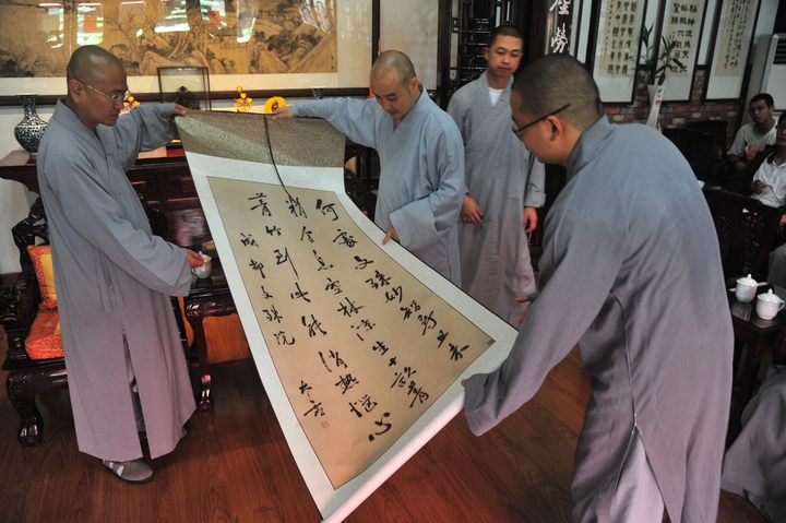 文殊院赠送法鼓山一幅太虚大师为文殊院题写的书法作品