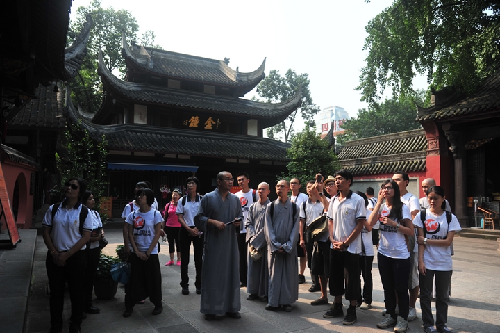 2013年8月16日,台湾法鼓山副住持果品法师率领参访团来到成都文殊院参观访问。来自法鼓山僧伽大学的六位法师及法鼓山世界青年会的二十名志愿者,受到文殊院方丈宗性法师、堂主宏开法师的热情接待。