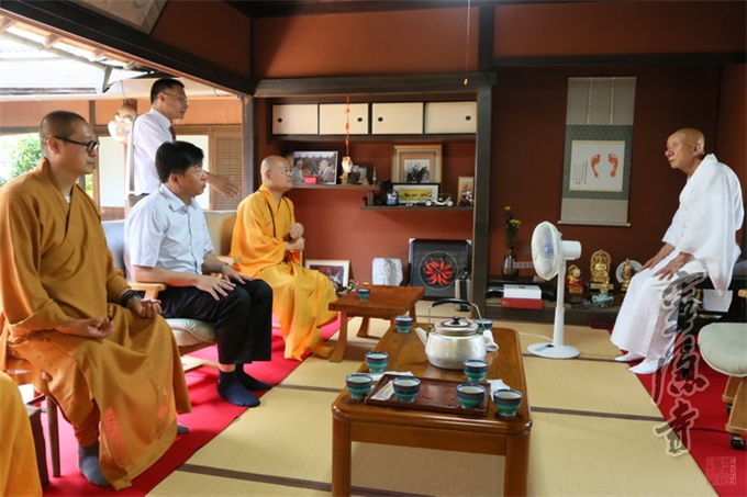 15日上午,光泉法师一行拜访日本临济宗妙心寺派灵云院住持则竹秀南长老,赞叹他在致力中日世代友好方面所作出的努力与贡献。