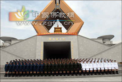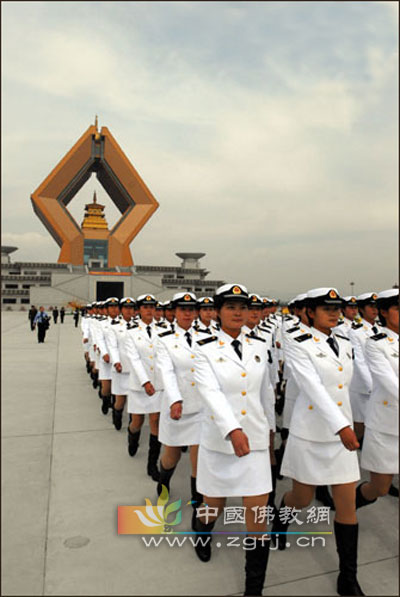 2009年10月13日参加国庆六十华诞阅兵仪式凯旋归来的三军女兵方队以及第四军医大学200余人来到陕西法门寺景区,参加了“祈福中国,盛世华诞”法门寺文化景区祈福中国活动。 参加活动的三军女兵方队迈着整齐的步伐,通过景区佛光门进入景区,引起路人纷纷驻足观看。这之后,201位三军女兵方阵参观了景区标志性建筑合十舍利塔以及地宫文物,在展的佛教文化艺术展也引起了女兵们的浓厚兴趣。(稿源:华商网)