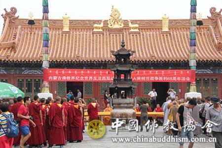 内蒙古佛教协会组织全区各大寺院开展纪念中国人民抗日战争暨世界反法西斯战争胜利68周年祈福世界和平法会