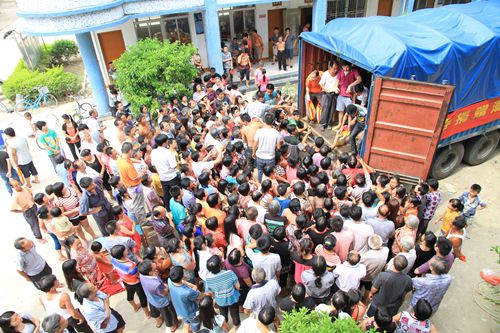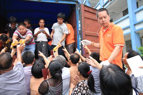 8月21日下午,印顺大和尚亲自接见前往灾区的20名弘法义工志愿者,给予了鼓励与祈福加持。他表示,赞叹所有志愿者的爱心与行动,请大家一定注意安全,一定要将急需物资直接分发到各村各户每个灾民手中,同时,请带去弘法寺的问候,祝灾区人民安好!祝志愿者顺利!随后,志愿者们随同弘法寺派送灾区的首批救灾物资车辆一起出发,至21日晚间,30吨米和油已经顺利到达潮汕普宁。今天,即22日上午开始,急需救灾物资由随车志愿者分别派送潮阳、普宁中三乡镇,同时,第二批30顿物资已经筹集完毕,第二批弘法志愿者也已经招满,今晚准备出发前往灾区。据现场连线了解,截止22日下午4点,弘法义工志愿者已经分成2队分赴2处,其中一处已经派发了一千多份大米和油,派发活动正在进行中。