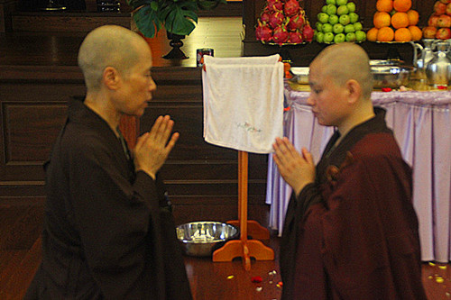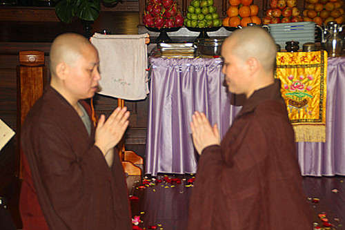 结夏是佛教中的专用名词,是佛为了护生物命,令出家修道之人能够在特定的时间内,精进用功办道,同时也是为了给在家人一个学习的榜样。因此佛制僧众,在夏季雨水多时,要安住一处,静心修学三个月,这就是结夏。佛在世时,这些结夏的僧众,有的在山间修禅定,有的得四道果来利益众生,有的在树下经行,有的得六通自在,还有证到了十地的大菩萨,他们暂时在大众中现僧相,他们来自十方却在这一时间内集在一处,在七月十五日结夏三个月期满之时,大家互相检查,看在这期间是不是戒律精严。有的丝毫无犯,具清净戒;有的犯了戒当众忏悔;也有的虽然犯戒,但自己不知道,这就要自愿地任其他人来检举揭发自己的过错,所以叫自恣,经过自恣以后,自己承认犯戒,按律当众忏悔,忏悔后复得清净。因此,七月十五日就叫僧自恣日,也叫佛欢喜日。在律中又讲,比丘僧十五自恣,比丘尼当十六自恣,因此,太平寺遵佛制,在七月十六日举行自恣法会。