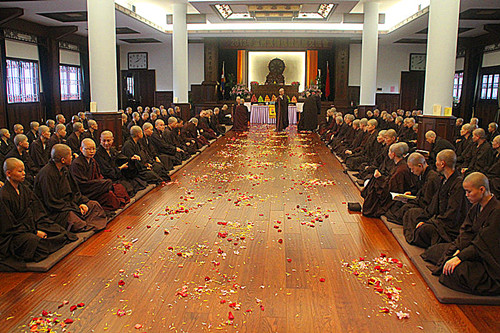 2013年8月22日上午七点半,温州太平寺全体僧众,秉佛教诲,依照佛制,在太平寺般若讲堂内,进行一年一次结夏安居自恣法会。