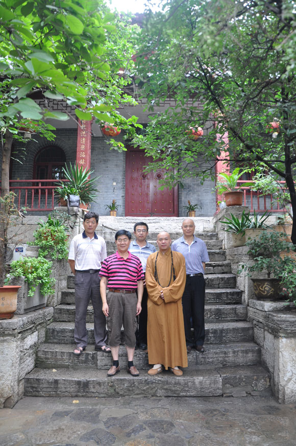 果光大和尚陪同客人先后参观了兴化寺唐宋摩崖石刻造像室、大雄宝殿、大佛殿,介绍了北魏大石佛的雕刻历史,介绍了毛主席七次到徐州并登上云龙山和参观兴化寺的情况。李树喜副会长对大佛的悠久历史和雕刻艺术由衷赞叹。最后,客人还参观了云龙山放鹤亭以及碑廊等景点,在放鹤亭前宾主双方合影留念。