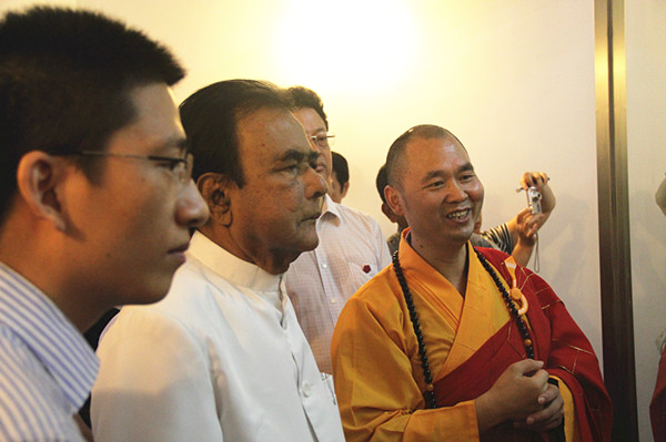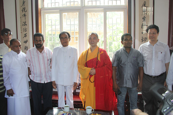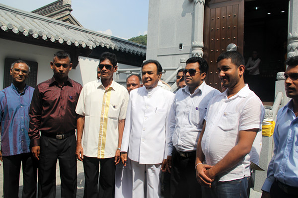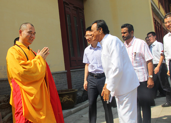 24日上午,斯里兰卡总理迪萨纳亚克·贾亚拉特纳一行在南京副市长陈刚、南京市民族宗教事务局局长李兰等领导的陪同下参观访问南京栖霞古寺,江苏省佛教协会副会长、南京佛教协会会长、栖霞古寺住持隆相大和尚接待并陪同参观。