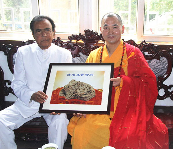 隆相大和尚赠送客人佛顶骨舍利放大照片