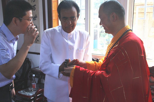 隆相大和尚赠送斯里兰卡总理迪萨纳亚克·贾亚拉特纳佛珠