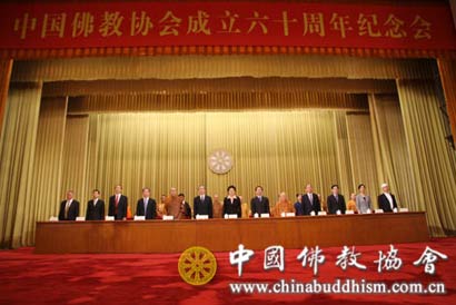 中共中央政治局委员、国务院副总理刘延东出席纪念会,并代表中央政府向中国佛教协会成立60周年表示祝贺。她也对中国佛教协会今后的发展提出了希望。她指出:60年来,中国佛教协会团结带领全国佛教界发扬优良传统,坚定不移走以社会主义社会相适应的道路,为建设小康社会和社会主义和谐社会,以及世界和平做出了积极贡献。