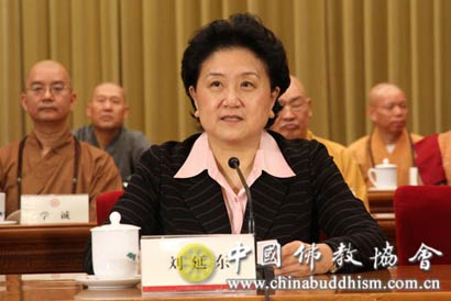 刘延东提到,希望佛教协会发挥佛教的积极作用,增强信众的责任感,在社会变革的过程中,发挥疏导功能,引导培育信众理性平和宽容的良好心态,同时也要加强自身建设,抵制商业化倾向,维护佛教清净庄严的形象。