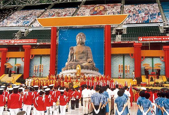 7月1日,由香港佛教联合会发起主办的香港佛教界庆祝回归祈福大会在香港大球场举行,这是香港佛教界有史以来规模最大的庆祝活动。(见图)