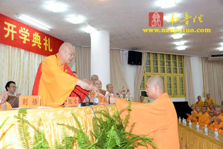 则悟法师代表厦门市佛教协会和南普陀寺对新学僧表示热烈欢迎,他说,学习佛法的过程是深信因果的过程,要切合社会的期望,要有责任心、时代感,立争成为时代有用的僧才。在教师节即将来临之即,祝愿辛勤耕耘的园丁们节日愉快、身体健康。