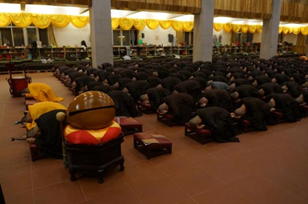 8月27日,传戒法会的第二天,当日上午教用钵规则、过堂规矩;下午过毗尼;晚上礼佛忏悔。