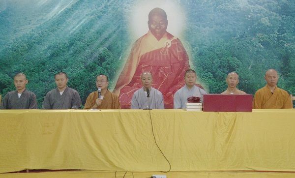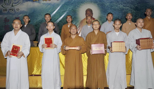 最后,法师们为2013上半年在修学和日常生活中表现突出、获得优秀奖及全勤奖的学僧们颁奖并合影留念。开学典礼在热烈的掌声中圆满结束。