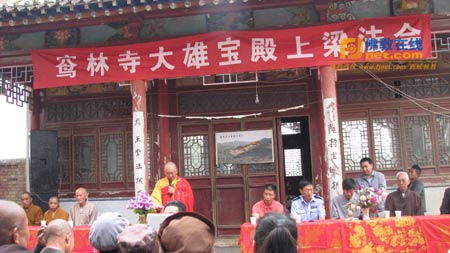 2013年8月26日上午,甘肃渭源县窎林寺大雄宝殿上梁法会在天王殿前隆重举行。