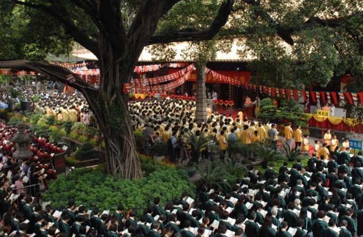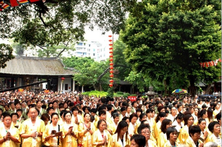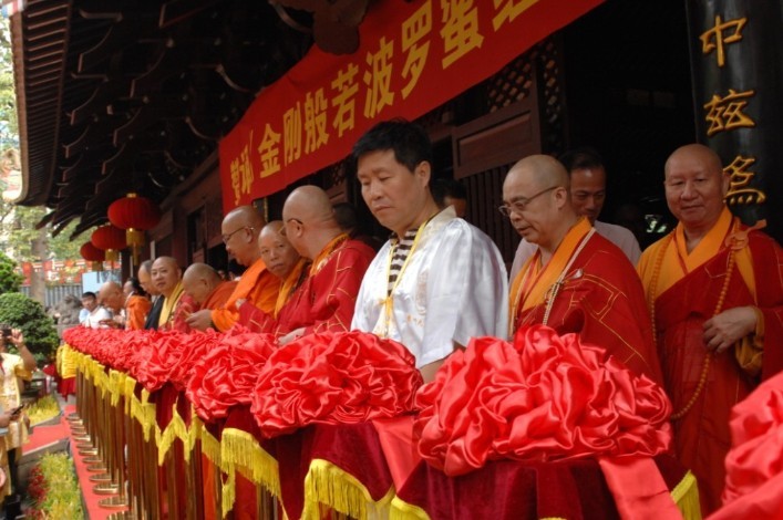 “赞诵《金刚般若波罗蜜经》大法会” 9月5日上午在光孝寺举行。清晨伊始,光孝寺内人山人海,幡旗随风飘扬,梵音萦绕。来自中国、斯里兰卡、泰国、日本、韩国等国家和地区的高僧大德参加了庆典,并带领信众们齐诵《金刚经》,场面庄严殊胜,共同祈祷国泰民安,风调雨顺,世界和平。