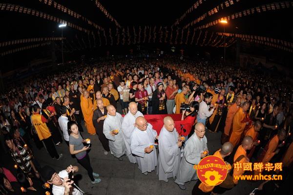 万众传灯,传的是恒久的智慧和光明,传的是心灵中的平安和喜悦,传的是一种信念,传的是一种祈盼, “万法因缘生,缘起吉祥灯”,来自海内外的十几万信众,在这“千年等一回”的传灯盛会里,感受到了因佛结缘的喜乐,天下佛子一家亲,诚如是也。