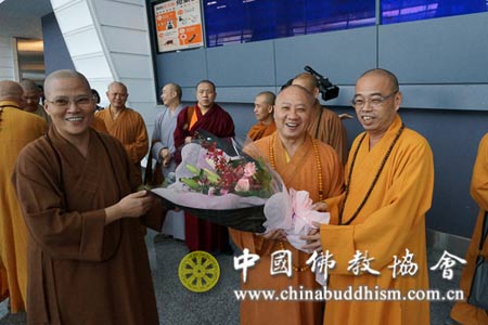 台湾中国佛教会在机场举行了隆重的欢迎仪式