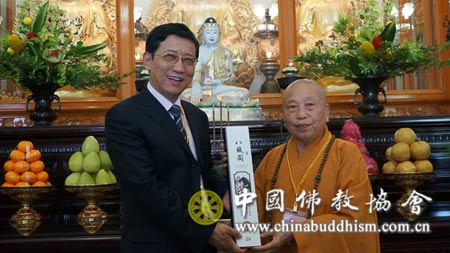 2013年9月10日下午16时30分,大陆佛教代表团一行到台湾中台禅寺参访交流,受到中台禅寺导师惟觉长老,及中华比丘尼协进会、台湾新竹县佛教会的热情欢迎。代表团一行与中台禅寺、台湾中华比丘尼协进会进行了深入交流。