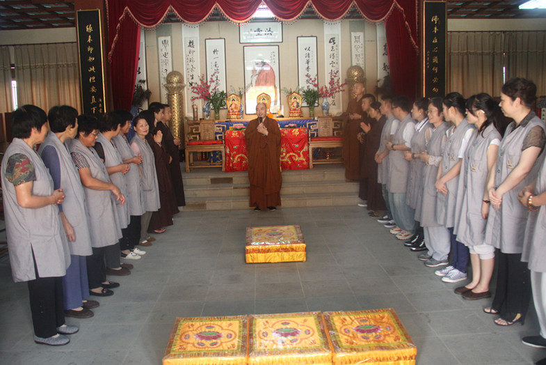 15日上午,曙提法师为几位营员授受皈依并随机开示皈依的意义以及皈依后如何发心等。受皈依的营员信受奉行,心生欢喜!
