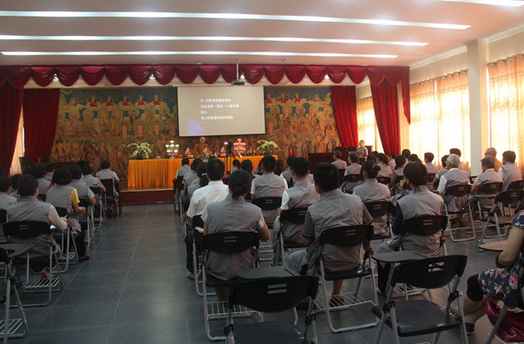 下午的活动可谓是精彩纷呈。首先,上觉下真长老为大众作“观世音菩萨耳根圆通章”专题讲座。长老讲法旁徵博引,生动活泼,营员们虔诚聆听,掌声热烈!