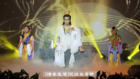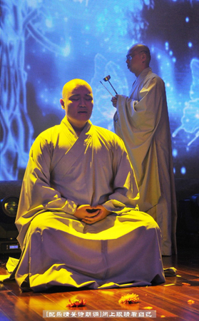 晚会由净闻法师、则日法师主持。僧俗二众分别演出了《从当下出发》《普陀山缘起》《闭上眼睛看自己 》《燃灯之歌》《 自如》等节目,展现出表演者积极向上的精神面貌和丰富多彩的内心世界。