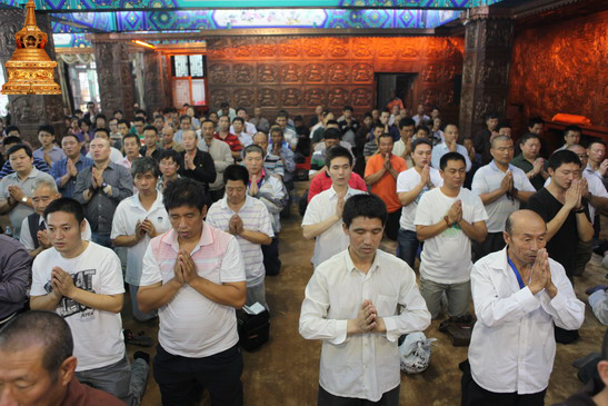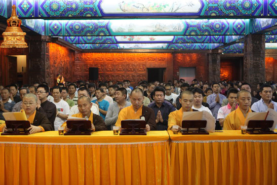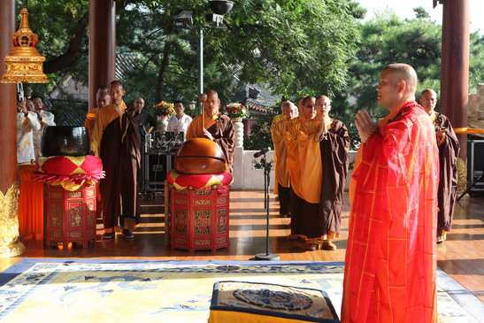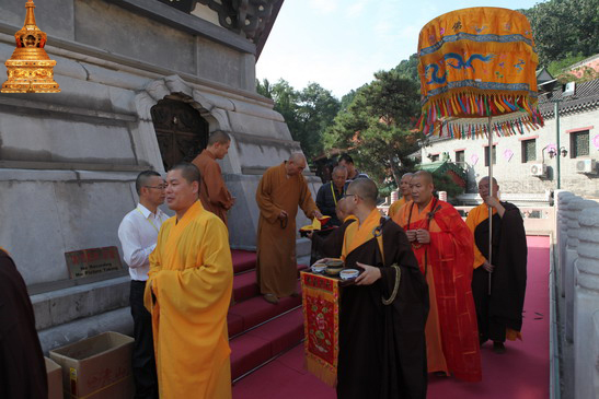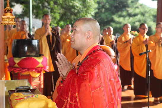 本寺方丈常藏大和尚为上午的开塔仪式主法;随后,常藏大和尚在新综合楼2楼为来自全国各地的两千三百余名善信传授三皈、五戒。整个法会如法如律、吉祥圆满,一切大众清凉喜乐、踊跃赞叹。