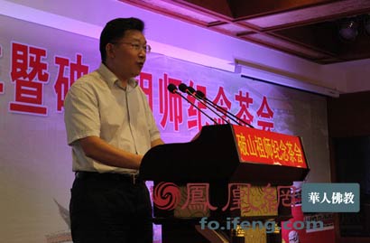梁平县县委书记蒋宜茂致欢迎辞。(图片来源:凤凰网华人佛教 摄影:李保华)