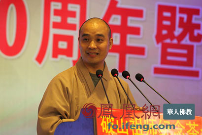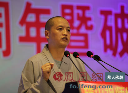 中佛协副会长,湖北省佛教协会会长正慈法师讲话。(图片来源:凤凰网华人佛教 摄影:李保华)