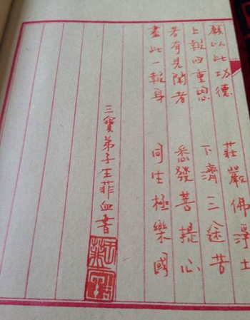 王菲血抄佛经《佛说长寿减罪护诸童子陀罗尼经》