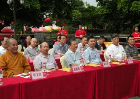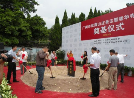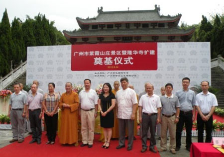广州市民宗局宗教一处处长谢安平先生、花都区委统战部长赵龙先生、花都区人大副主任邵静女士、花都区人民政府副区长李荣渝女士、花都区政协副主席王伯荣先生、花都区委区府办调研员王辉先生,隆华寺住持义普法师,花都区委统战部副部长、区民族宗教局局长温日升先生,花都梯面镇党委副书记等各级领导嘉宾出席了奠基仪式。