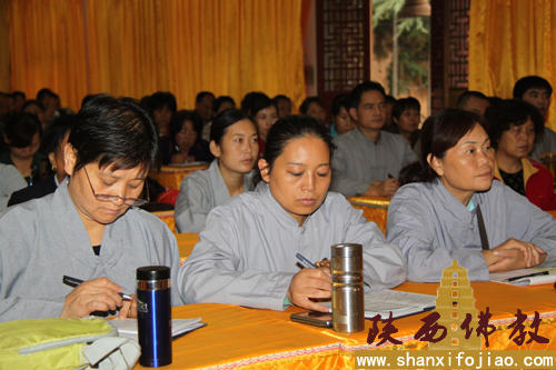 2013年9月23日至26日,陕西省佛教协会首届正信居士培训班在宝鸡市扶风县大明寺举办,来自全省各市(区)120位正信居士参加。本次培训班共设置八个课题,历时四天。