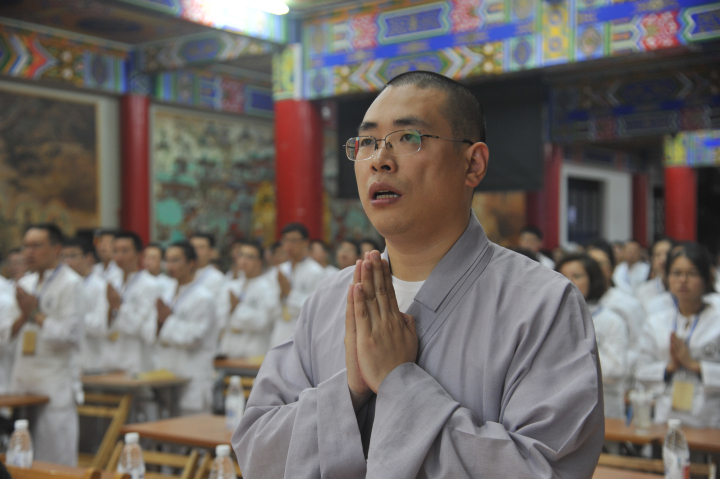第十四期寺院生活体验营正式开营,庆妙法师带领营员齐唱《三宝歌》