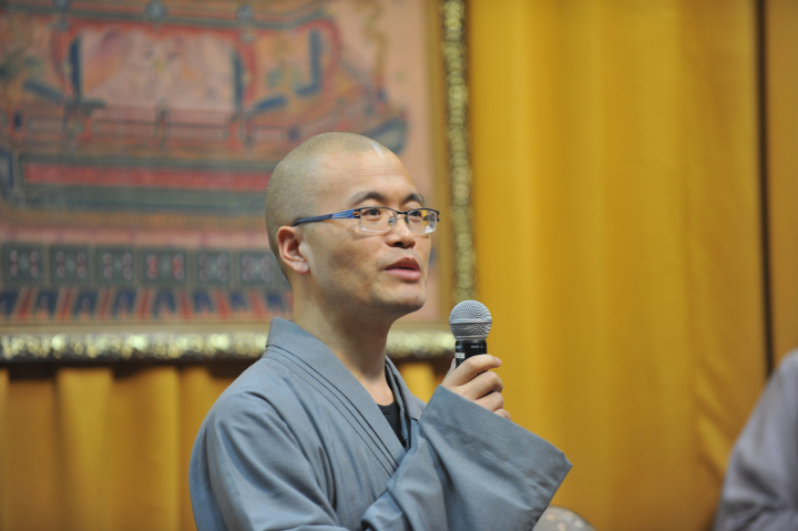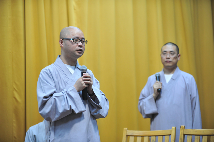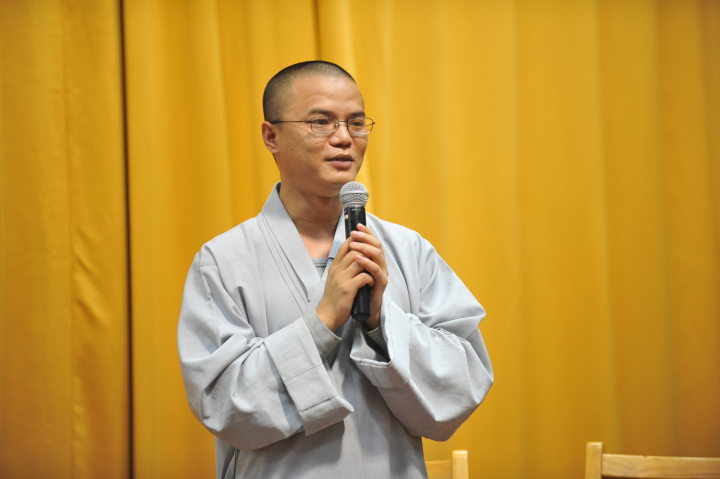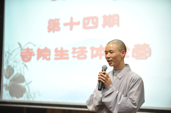 普耀法师作为本期体验营的授课法师欢迎营员的到来