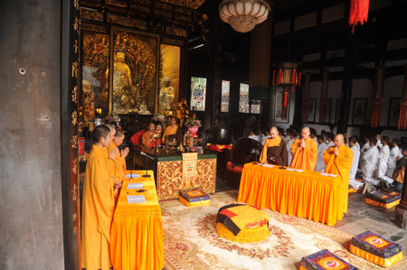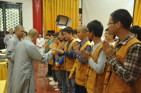 下午三点,闭营式在文殊阁一楼举行,宗性大和尚祝福大家“人生光明,光明人生”,并欢迎大家常“回家”看看。满载着喜悦,收获着智慧,文殊院第十四期寺院生活体验营在“三天体验,一生受用”的欢喜中圆满落下帷幕。闭营式后有140位营员集体求授三皈依,下午五点,140人的皈依队伍在大雄宝殿参加了庄严的皈依仪式。