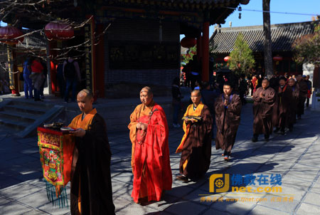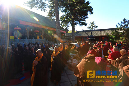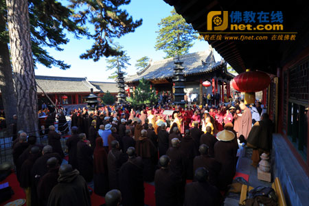 2013年10月9日,山西省五台山黛螺顶寺内高僧云集,香客满院,以“祈祷世界和平、国泰民安”为宗旨的千僧祈福吉祥法会正在隆重举行。来自全山青黄两庙的1300余名僧人和各地众信200余人参加。法会由五台山佛教协会会长、黛螺顶住持昌善法师主法。