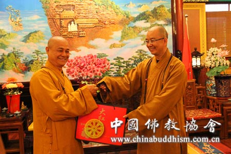 中国佛教协会秘书长王健,副秘书长宗家顺、演觉法师,国际部副主任王立等会见时在座。