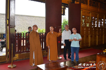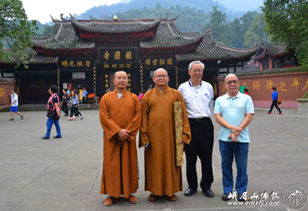 2013年10月13日下午,马来西亚心审法师一行到峨眉山报国寺参访,报国寺监院昌明法师热情接待并陪同参观。