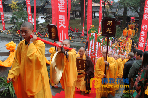 上午9时,灵山寺内祥云缭绕,佛乐悠悠、钟鼓齐鸣、梵音悠扬。灵山寺全院执事及全寺僧俗两序大众在山门前列队恭请照杰法师升座。演觉法师、演法长老、大恩法师、素慧法师、素全法师、广成法师、照州法师、寂义长老分别向照杰法师授祖衣、佛珠、具、钵、佛尘、锡杖、如意、柱杖等。随后,照杰法师在仪仗队的引领与众嘉宾的簇拥下缓缓行至各殿拈香礼拜,卓杖说法。灵山寺居士信众夹道欢迎,向照杰法师问讯致敬。当照杰法师在仪仗队的导引下来到大雄宝殿时,意寂法师为照杰法师送位。在灵山寺法堂内,永寿法师为照杰法师送座。随后,照杰法师登法座拈香说法,正式荣膺灵山寺“中兴第一代方丈”。