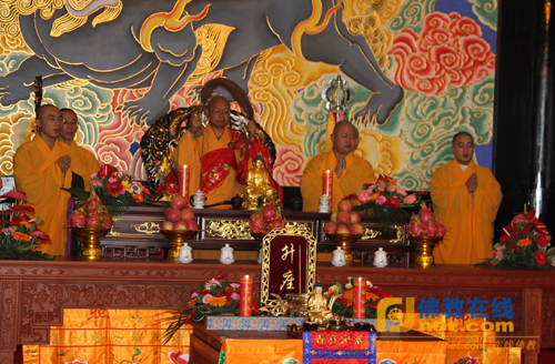 四川省佛协副会长、新都宝光寺方丈意寂法师在大雄宝殿为照杰法师送位