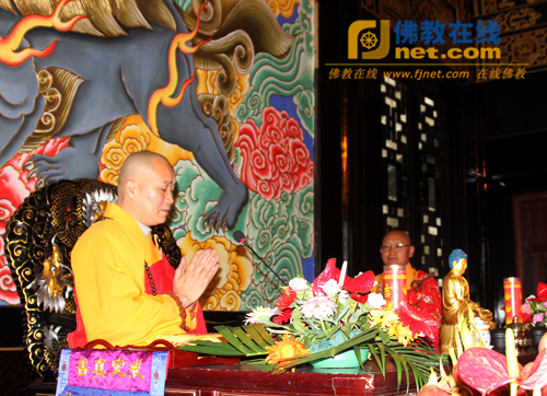 中国佛教协会副会长、四川省佛教协会会长永寿法师在法堂为照杰法师送座