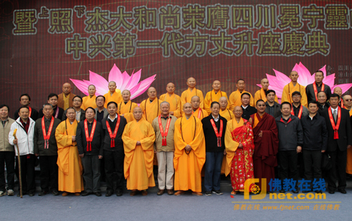 中国佛教协会副会长、四川省佛教协会会长永寿法师,中国佛教协会副秘书长、北京广济寺方丈演觉法师,中国佛教协会教务部副主任长顺法师,四川省佛教协会咨议委员会主席、成都昭觉寺方丈演法长老,四川省佛协副会长、凉山州佛协名誉会长香根·边玛仁青仁波切,省佛协副会长、成都大慈寺方丈大恩法师,省佛协副会长、什邡罗汉寺方丈素全法师,省佛协会副会长、南充栖乐寺方丈海空法师,省佛协副会长、彭州三昧禅院方丈广成法师,省佛协会副会长、成都石经寺方丈素慧法师,省佛协副会长、新都宝光寺方丈意寂法师,省佛协会副会长、西昌光福寺方丈照州法师,省佛协会副会长、遂宁广德寺方丈普正法师,省佛协会副会长、乐山凌云寺方丈照观法师,省佛协会副会长、崇州白塔寺住持果平法师,省佛协秘书长王立军居士,省佛协副秘书长、雅安云峰寺方丈智灯法师,省佛协副秘书长传智法师、满霖法师等来自各地的诸山长老、大德法师出席了升座庆典法会。