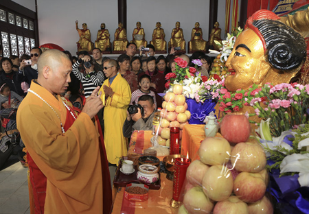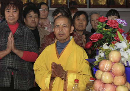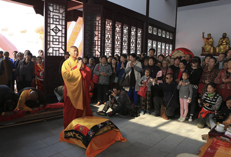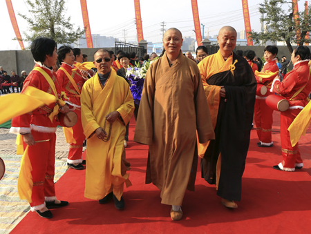 2013年10月19日,荆州市沙市区东岳寺大雄宝殿佛像开光法会隆重举行。湖北省佛教协会副会长、荆州市佛教协会会长心继大和尚为为佛像开光主法,荆州市和沙市区民族宗教主管部门的有关领导到会祝贺,来自荆州城区及周边县市近千名佛教四众弟子共同见证和成就了这一佛门盛事。 东岳寺原名东岳庙,始建于宋嘉佑元年,代有高僧出世,明末毁于兵燹,清乾隆13年由心胜和尚募资重修,规模远胜往昔,一度成为荆州地区重要的佛教道场。1996年4月,东岳寺依法获准重新开放,但由于地理条件限制,寺院重建工作一直止步不前。6年前,随着荆州城郊区域城市化进程的快速推进,有关部门将此寺转移至沙北新区五号公路旁,在荆州市和沙市区党委政府及相关部门的指导下,在十方信众的鼎力支持下,饱经沧桑的东岳寺重现曙光,再现光彩。 开光法会圆满后,心继大和尚代表荆州市佛教协会与东岳寺常住大众进行座谈。他说,易址重建的东岳寺已基本完成了第一期建设工程,后续建设仍很繁重,希望在注重寺院硬件建设的同时,尤其要加强自身的建设与团结,要以“教风年”活动为契机,更加坚定信仰,纯正道风,把东岳寺建设好、管理好,为荆州佛教事业的和谐发展做出积极贡献。 东岳寺住持宽树法师表示,将铭记心继会长的殷切嘱托,东岳寺常住大众在精心谋划第二期工程建设的同时,将一如既往地注重自身素质的提升,注重对居士教育、禅修体验的培养,为想了解、接触、认识佛法的居士信众提供方便之门,让其在寺院了解熏习佛法、体验禅修,以最大限度地获得心灵上的正能量,能用正信、正知、正念看待生活学习和工作,用更好的心态面对困难,达到净化人心、和谐社会的目的。