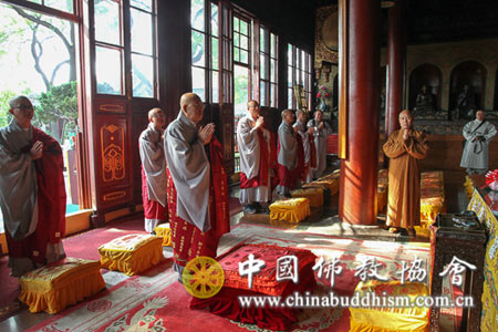 张道正长老一行首先在中国佛教协会副秘书长、北京广济寺方丈演觉法师的陪同下,在广济寺大雄宝殿内诵经礼佛。随后,学诚副会长在广济寺怀远堂会见了张道正长老一行,双方进行了亲切友好的交谈。