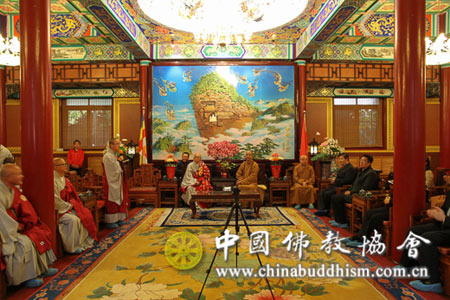 2013年10月21日上午,韩国佛教天台宗总务院长张道正长老一行拜访中国佛教协会